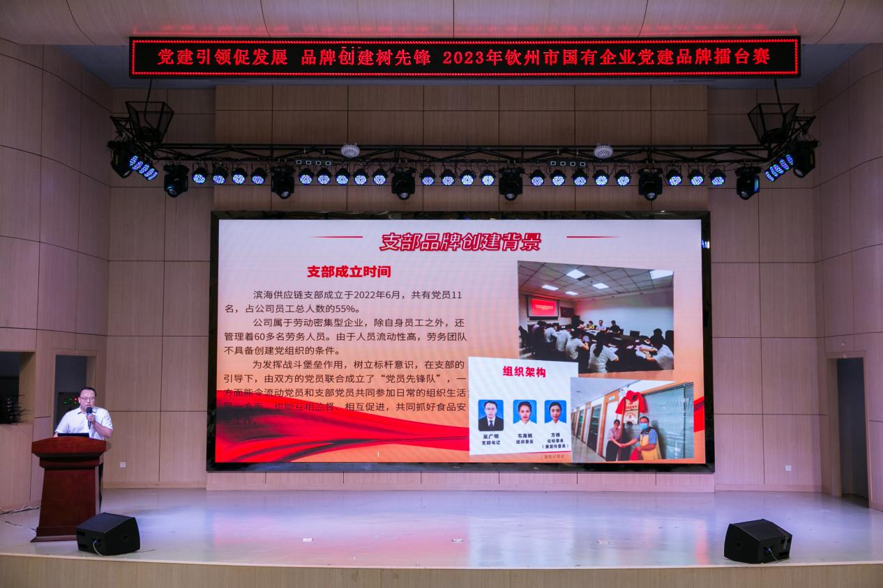 7月14日,由市委組織部、市國資委聯(lián)合舉辦的“黨旗引領促發(fā)展 品牌創(chuàng)建樹先鋒”2023年欽州市國有企業(yè)“十大黨建品牌”擂臺賽在市圖書館三樓報告廳舉行。本次擂臺賽,有市直、各縣(區(qū))等13個單位參加。經過激烈角逐,集團公司黨委下屬供應鏈公司黨支部參賽的黨建品牌“黨旗引領,食安先鋒 ”,被評為欽州市國有企業(yè)“十大黨建品牌”。
