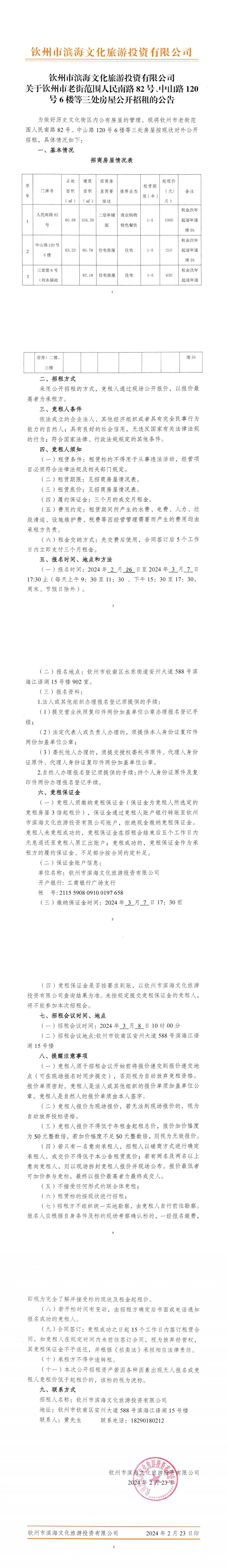 關于欽州市老街范圍人民南路82號、中山路120號6樓等三處房屋公開招租的公告