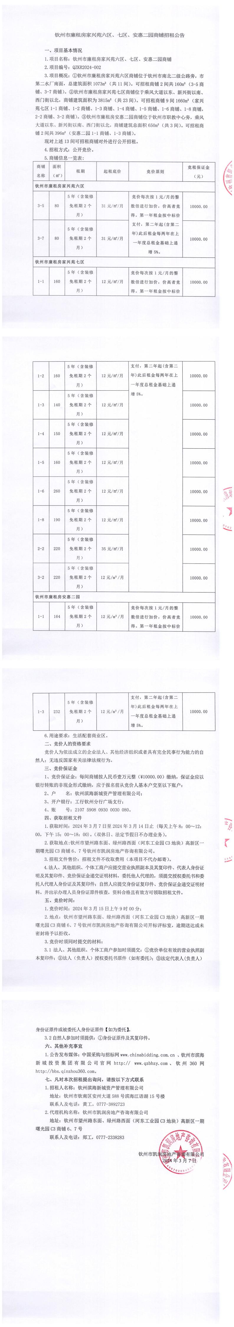 欽州市廉租住房家興苑六區(qū)、七區(qū)、安惠二園商鋪招租公告