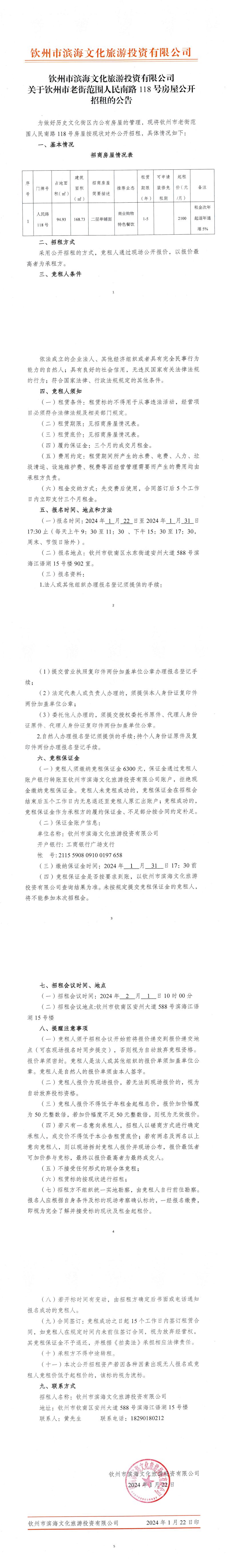 關(guān)于欽州市老街范圍人民南路118號房屋公開招租的公告