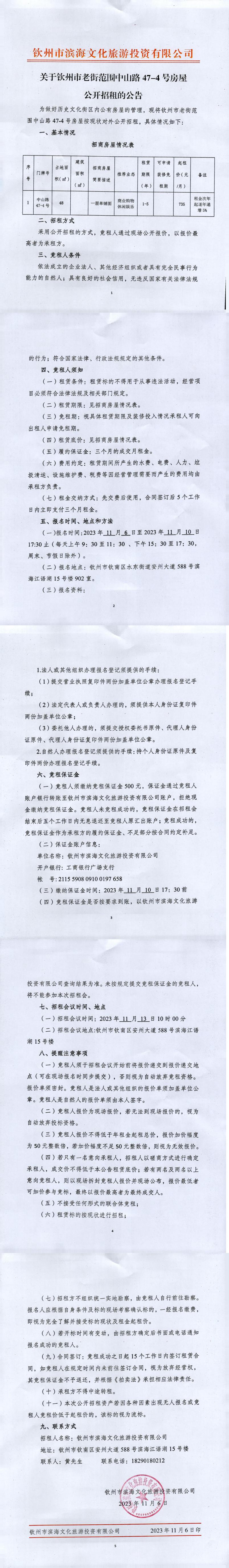 欽州市老街范圍中山路47-4號房屋公開招租公告
