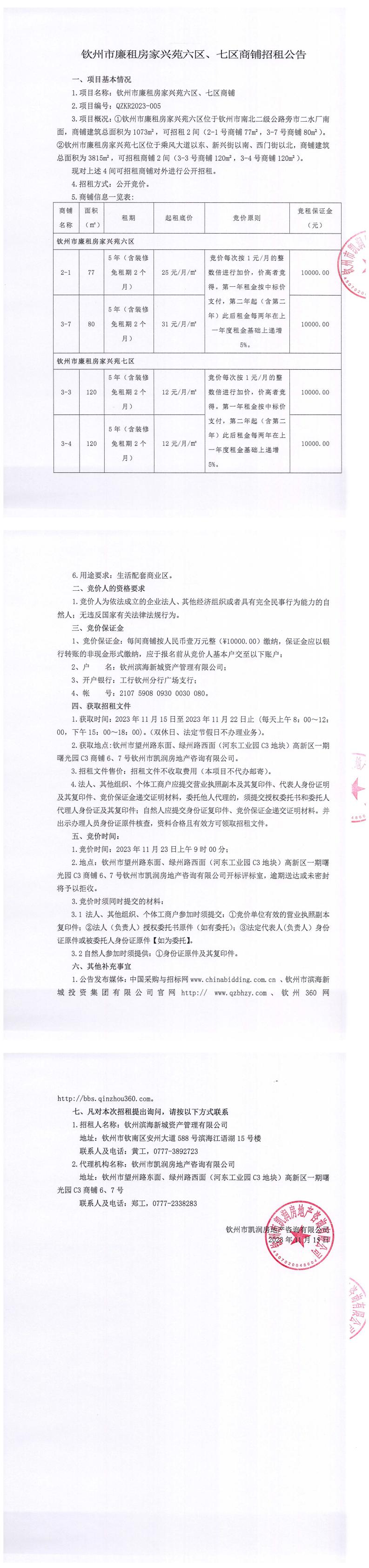 欽州市廉租房家興苑六區(qū)、七區(qū)商鋪招租公告