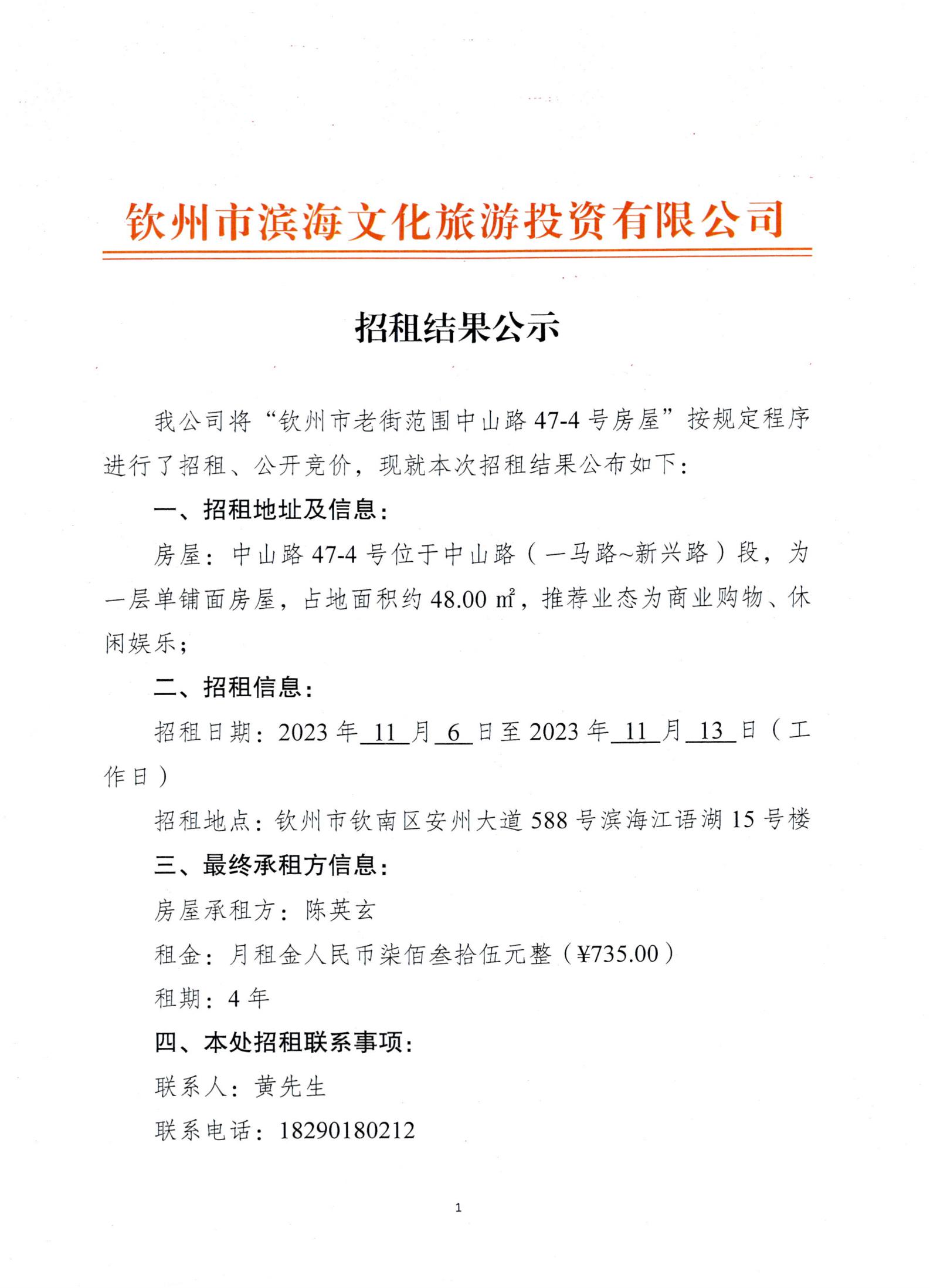 招租結果公示