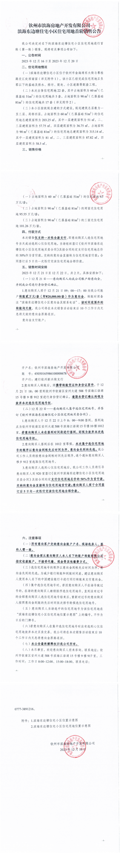 欽州市濱海房地產開發(fā)有限公司濱海東邊塘住宅小區(qū)住宅用地首輪銷售公告