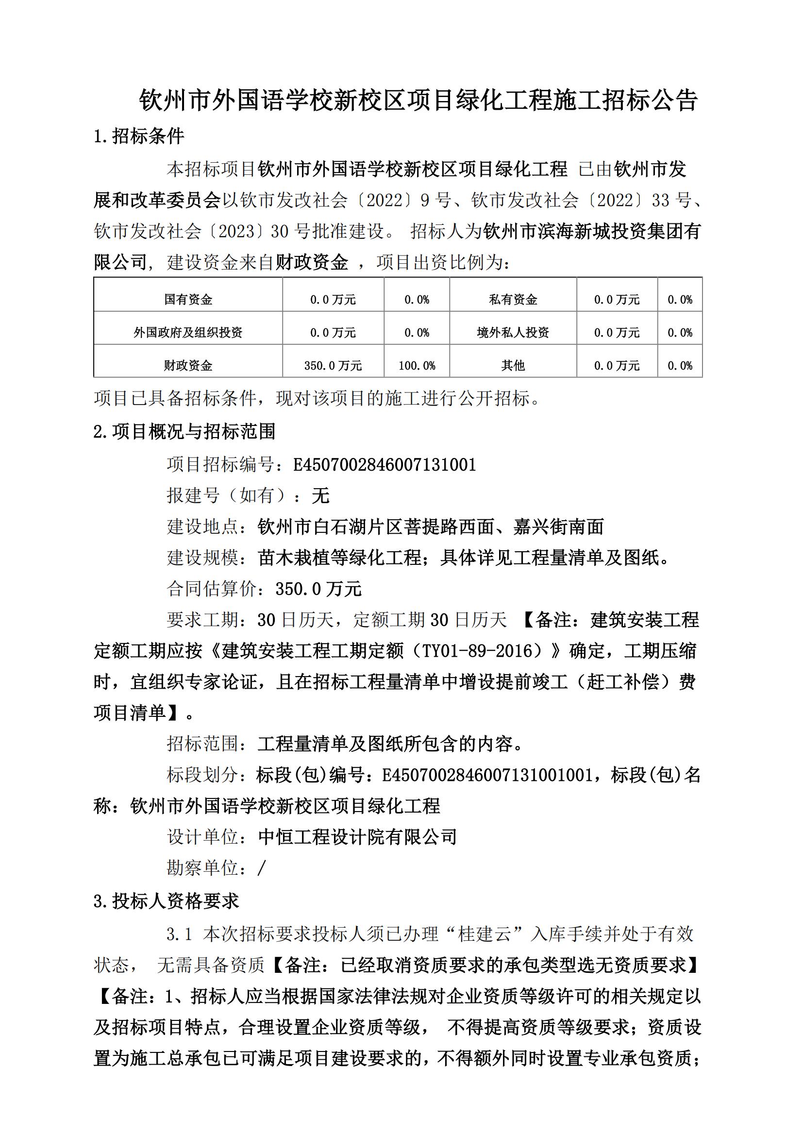 欽州市外國語學(xué)校新校區(qū)項(xiàng)目綠化工程施工招標(biāo)公告
