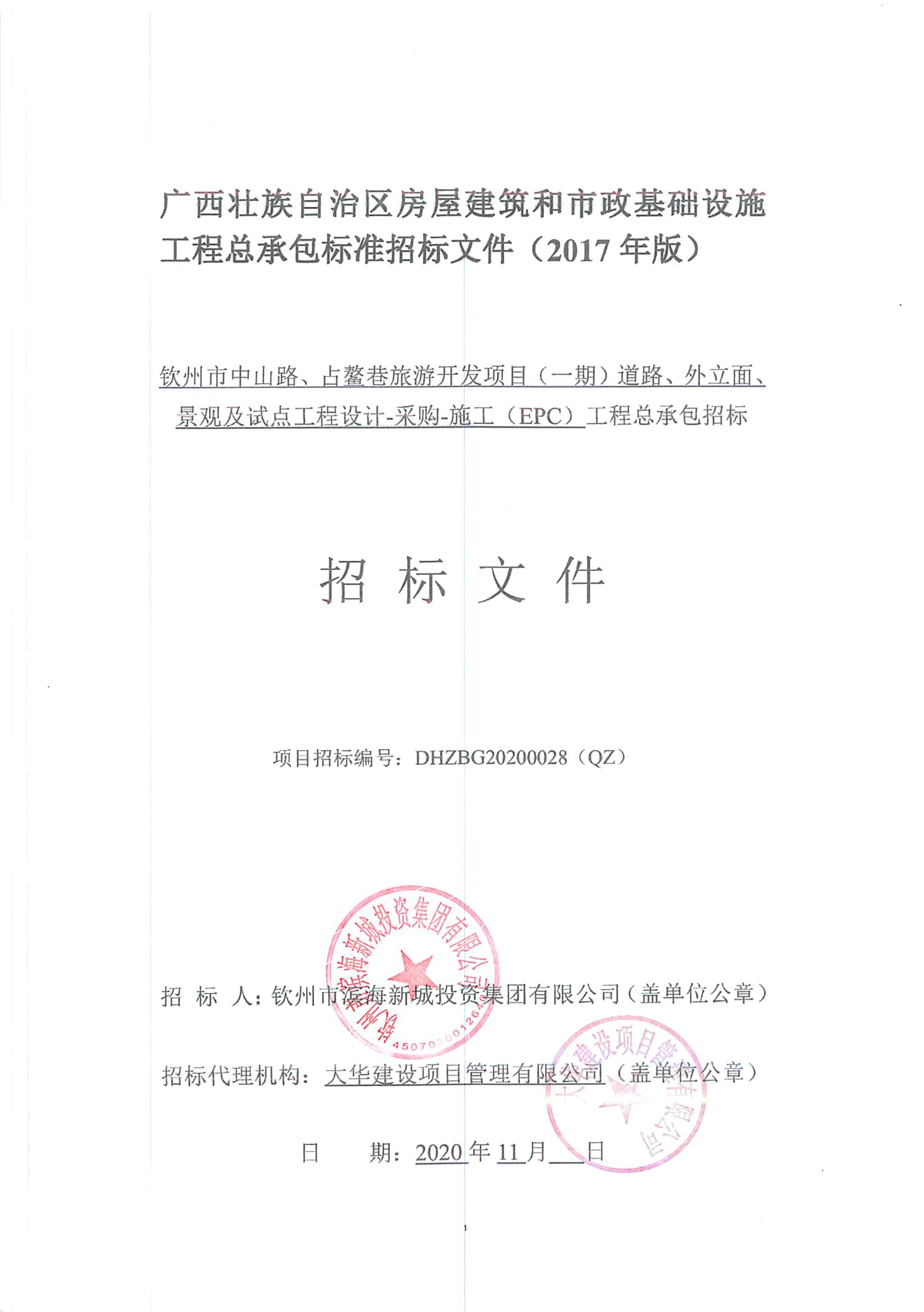 欽州市中山路、占鰲巷旅游開發(fā)項(xiàng)目(一期)道路、外立面、景觀及試點(diǎn)工程設(shè)計-采購-施工(EPC)工程總承包招標(biāo)公告