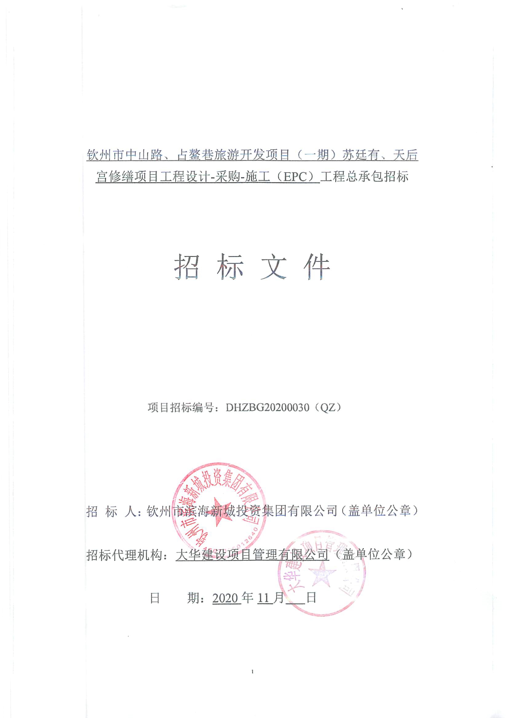 欽州市中山路、占鰲巷旅游開發(fā)項(xiàng)目(一期)蘇廷有、天后宮修繕項(xiàng)目工程設(shè)計-采購-施工(EPC)工程總承包招標(biāo)公告