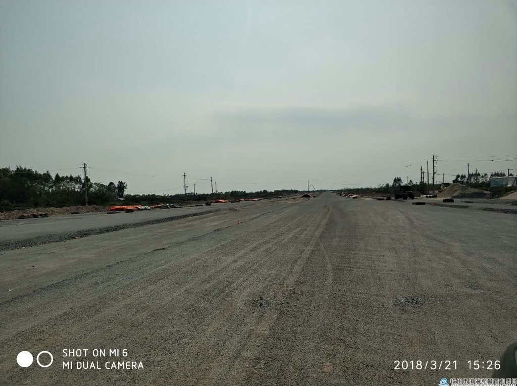 該項目于2017年2月22日進場施工,道路約1060m,路寬60m。主要建設內(nèi)容:道路工程、交通工程、排水工程、照明工程和綠化工程等。合同價59958018.42元,工期200日歷天,行車道及非機動車車道級配碎石鋪設約90%,k2+200及k1+900處過路管全包施工。雨、污水管網(wǎng)基本建成,行車道及非機動車車道級配碎石鋪設約90%。施工單位中余建設集團有限公司,監(jiān)理單位廣西益建工程建設監(jiān)理有限責任公司。