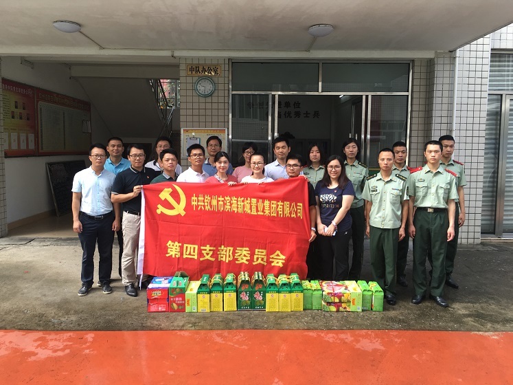 在中國(guó)人民解放軍建軍91周年之際,欽州市濱海新城置業(yè)集團(tuán)有限公司第四黨支部前往武警欽州邊防支隊(duì)勤務(wù)中隊(duì)開(kāi)展擁軍慰問(wèn)活動(dòng)。