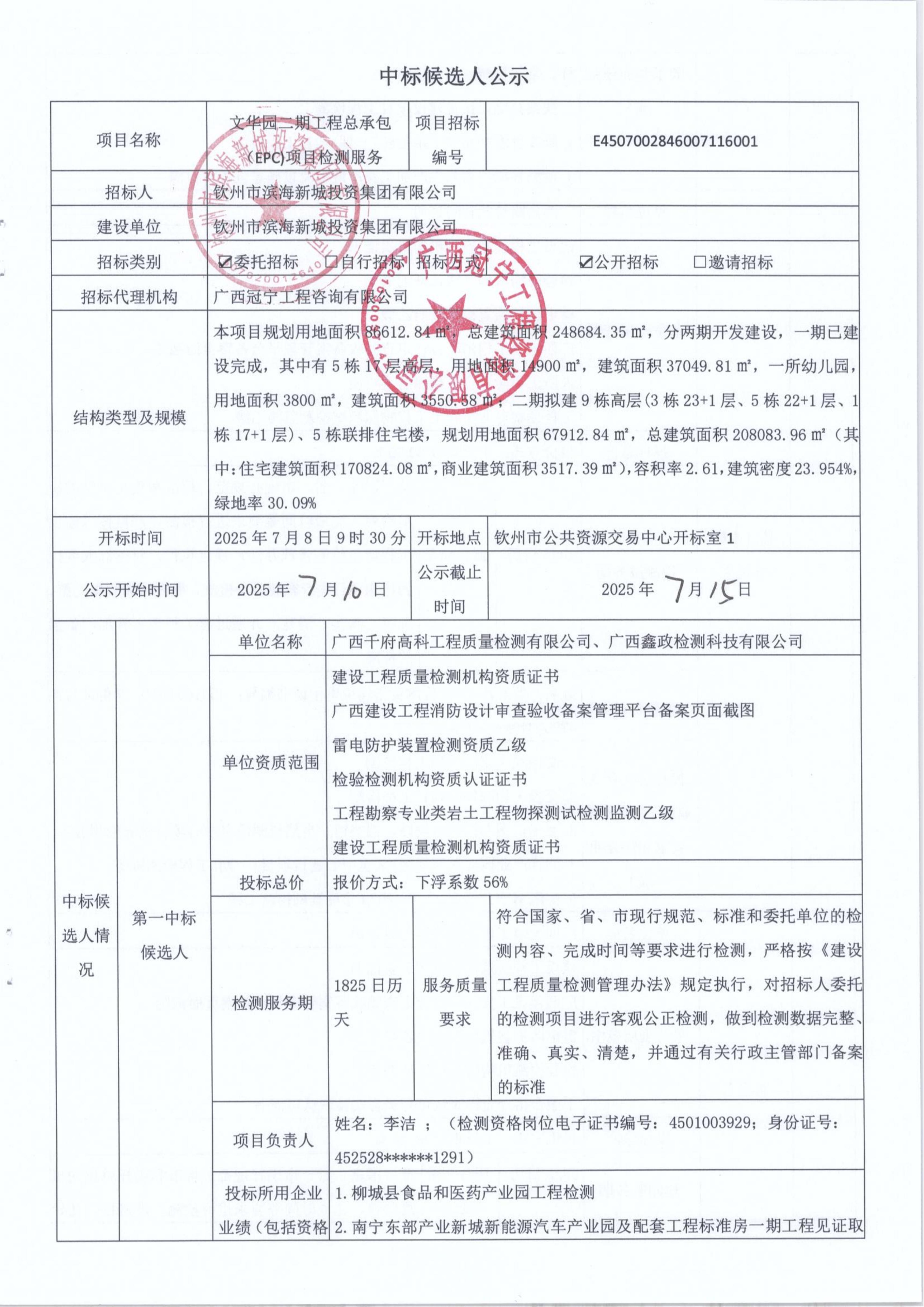 文華園二期工程總承包(EPC)項目檢測服務(wù)工程檢測招標(biāo)中標(biāo)候選人公示