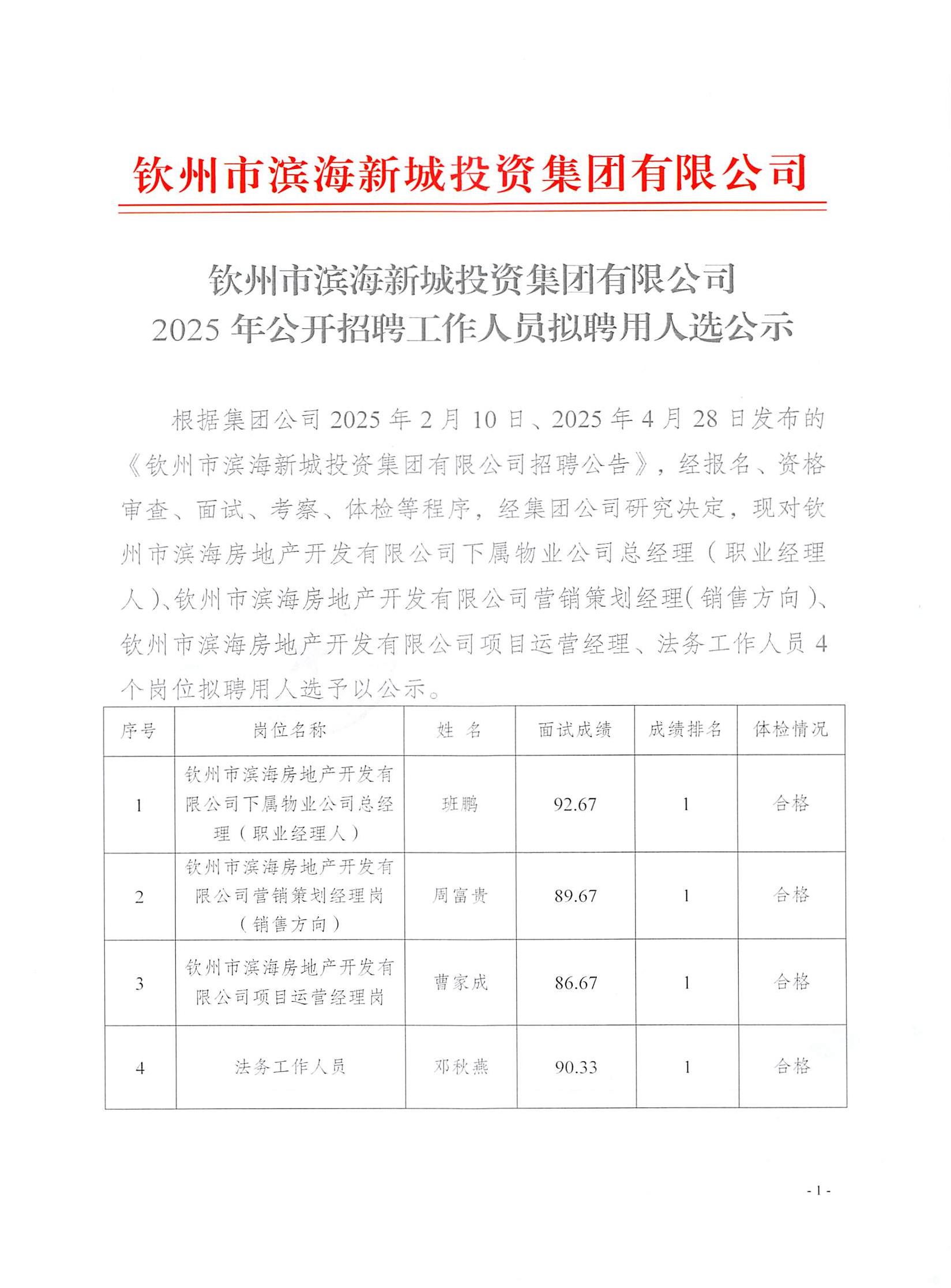 根據(jù)集團公司2025年2月10日發(fā)布的《欽州市濱海新城投資集團有限公司招聘公告》,經(jīng)報名、資格審查、......
