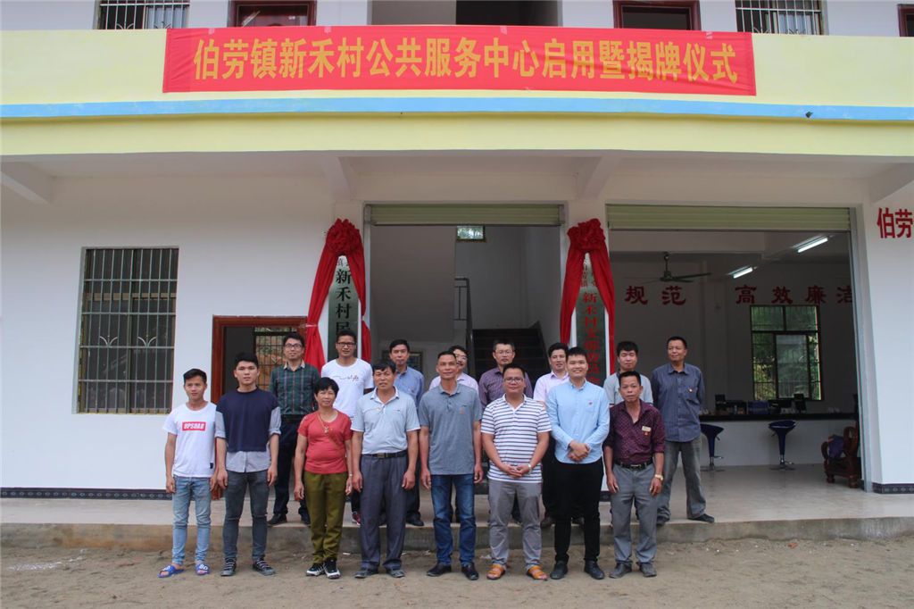 2018年4月28日上午,集團(tuán)公司扶貧幫扶聯(lián)系村——靈山縣伯勞鎮(zhèn)新禾村在新公共服務(wù)中心舉行揭牌儀式。我集團(tuán)公司和伯勞鎮(zhèn)人民政府、市檔案局、市林科所主要領(lǐng)導(dǎo)及駐村第一書記、包村工作組、村委全體成員齊聚新公共服務(wù)中心大樓前,共同見證新禾村新公共服務(wù)中心大樓揭牌儀式。