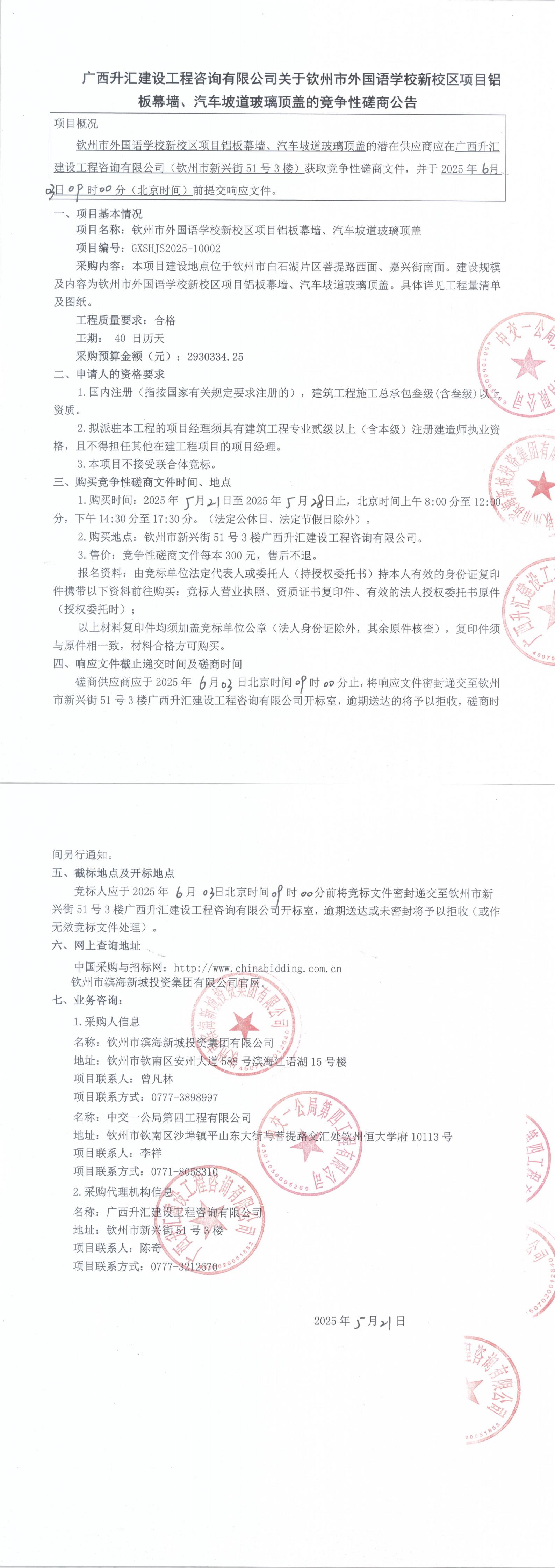 廣西升匯建設(shè)工程咨詢有限公司關(guān)于欽州市外國(guó)語學(xué)校新校區(qū)項(xiàng)目鋁板幕墻、汽...