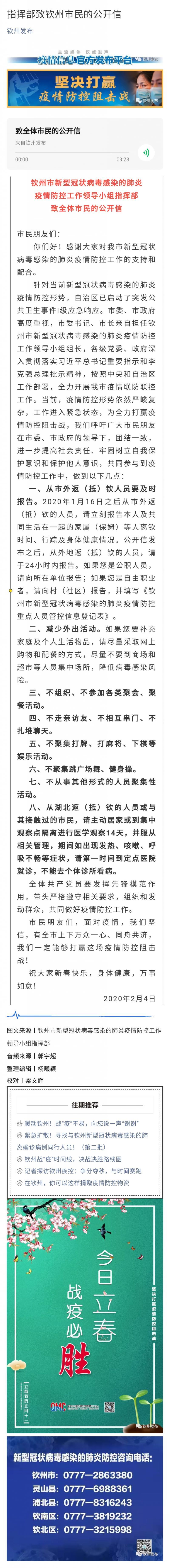 通告:疫情期間,欽南區(qū)實行“十不準”