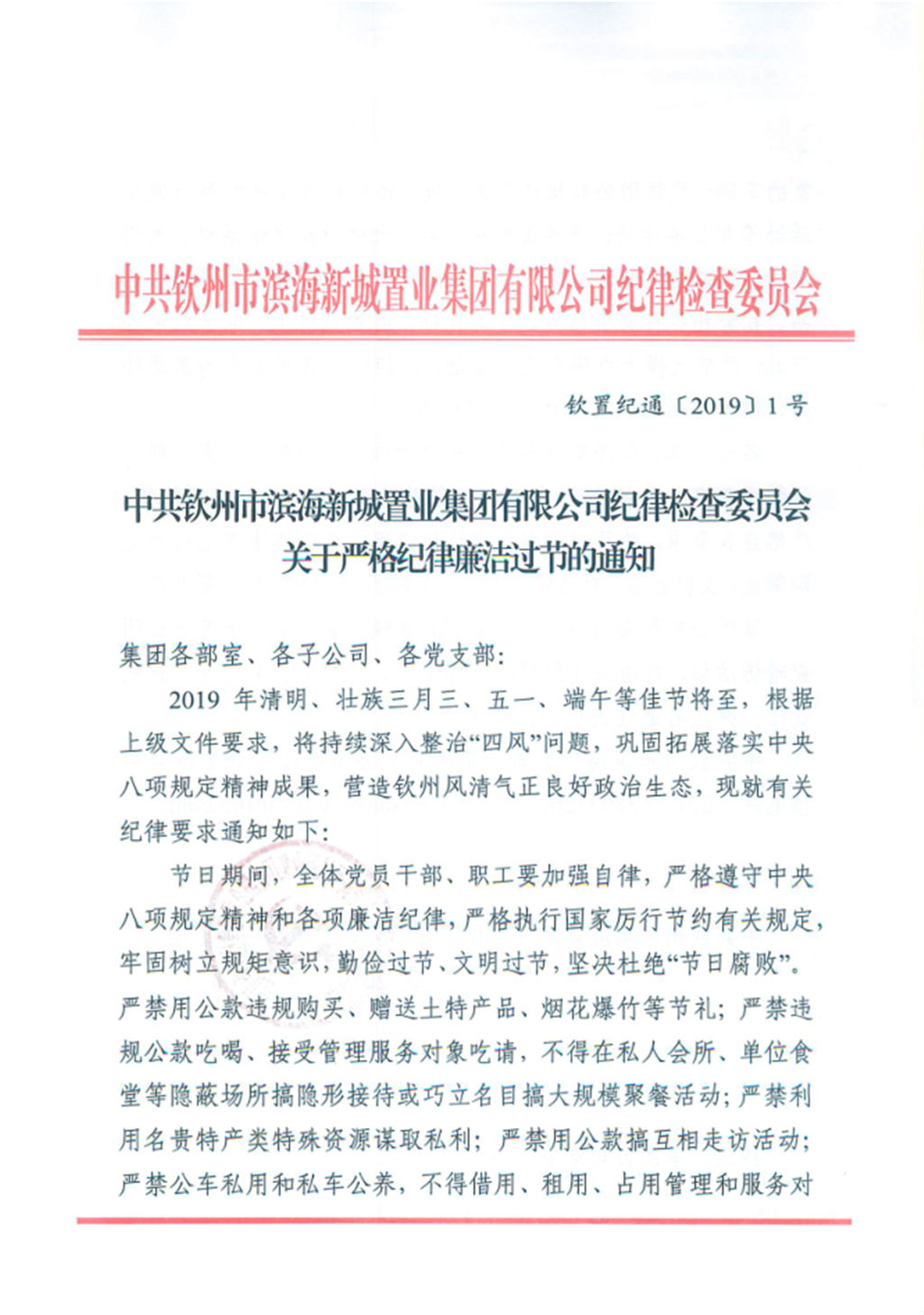 為強化重要節(jié)日節(jié)點紀律要求,嚴防“四風”問題反彈回潮,努力營造崇廉尚儉、風清氣正的節(jié)日氛圍。集團公司紀委印發(fā)了《關于嚴格紀律廉潔過節(jié)的通知》。