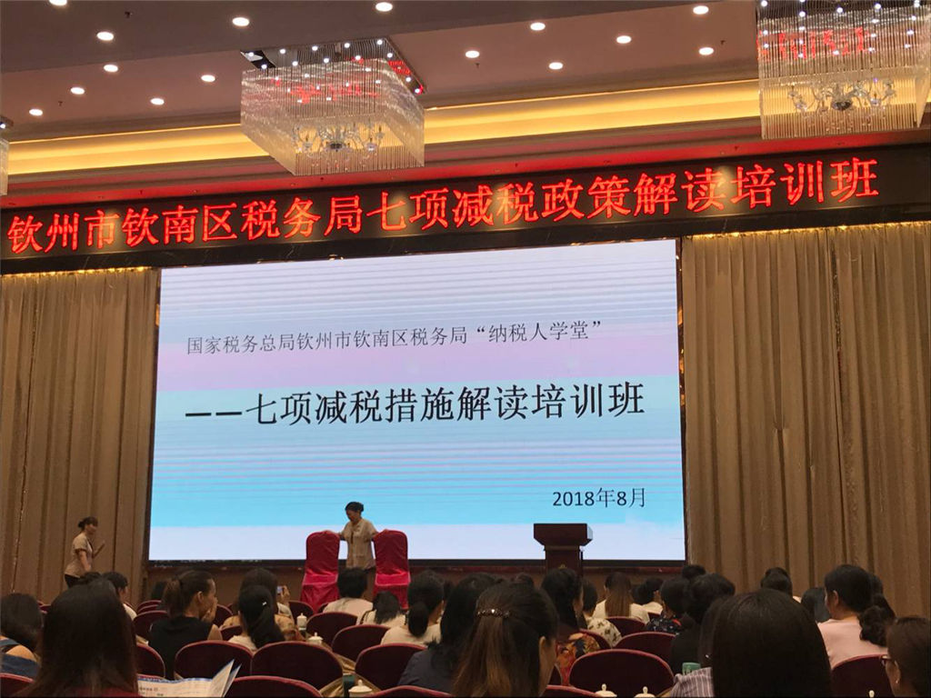 根據(jù)欽州市欽南區(qū)稅務局通知,我部員工于8月21日上午9點到金灣大酒店參加了稅務局七項減稅政策解讀及辦稅便利通操作培訓。為