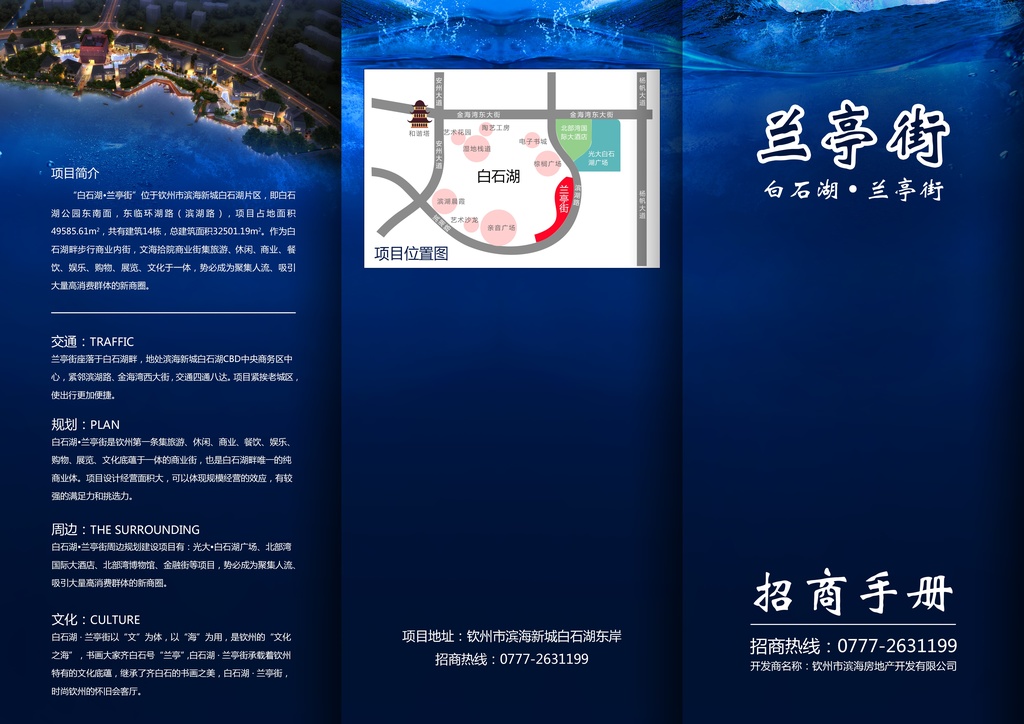 白石湖蘭亭街項目坐落于欽州濱海新城白石湖畔,毗鄰光大商圈,由風(fēng)格獨特的獨立式建筑群組成。項目占地面積49585.61㎡,總建筑面積32501.19㎡,地下停車場300多個停車位。作為白石湖畔步行商業(yè)內(nèi)街,蘭亭街集旅游、休閑、商業(yè)、餐飲、娛樂、購物、展覽、文化于一體,勢必成為聚集人流、吸引大量高消費群體的商圈。
