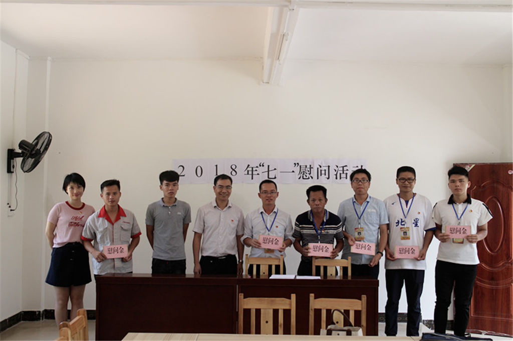 為紀(jì)念建黨97周年,弘揚(yáng)黨的光榮傳統(tǒng)和優(yōu)良作風(fēng),充分體現(xiàn)黨組織對基層黨員的關(guān)懷和愛護(hù),6月28日上午,集團(tuán)公司黨委副書記覃世金率部分黨員干部來到幫扶村—靈山縣伯勞鎮(zhèn)新禾村,開展集團(tuán)公司“七一”慰問生活困難黨員、老黨員和村干部活動,為他們送去慰問金和慰問品,同時(shí)也對集團(tuán)公司幫扶的貧困戶進(jìn)行了入戶走訪。 在慰問活動中,每到一戶慰問對象家中,集團(tuán)公司領(lǐng)導(dǎo)干部都和老黨員親切交談,傾聽老黨員暢談革命往事,詳細(xì)了解他們的身體狀況和生產(chǎn)情況,幫助他們解決生活中的難題,征求意見和建議,使他們精神上得到更多的鼓勵,切身感受到黨組織的關(guān)懷。慰問中,集團(tuán)公司領(lǐng)導(dǎo)干部對老黨員多年來為黨的事業(yè)作出的貢獻(xiàn)表示感謝,并鼓勵他們要保持堅(jiān)定不移的信念,樹立戰(zhàn)勝困難的信心,繼續(xù)發(fā)揮余熱,為新禾村的發(fā)展積極建言獻(xiàn)策。接受慰問的老黨員們都十分感謝集團(tuán)公司領(lǐng)導(dǎo)在百忙之中抽空前來看望和慰問,這讓他們倍感黨的關(guān)懷和愛護(hù),并表示將一如既往地為村里各項(xiàng)工作獻(xiàn)出自己力所能及的力量。 ![]()