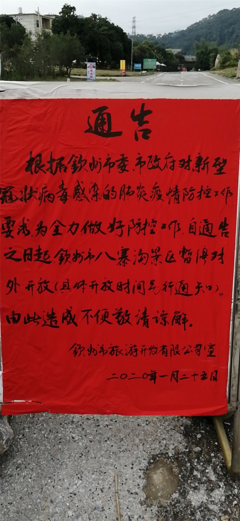 為進(jìn)一步加強(qiáng)八寨溝景區(qū)新型冠狀病毒感染的肺炎疫情防控工作,有效防止疫情經(jīng)旅游途徑傳播,切實(shí)保障游客及公司員工身體健康和生命安全。根據(jù)欽州市委專題擴(kuò)大會(huì)議對(duì)新型冠狀病毒感染肺炎疫情防控工作的部署,欽州市文化廣電體育和旅游局《關(guān)于取消欽州市 2020 年春節(jié)期間文化體育旅游活動(dòng)和暫停相關(guān)文化體育旅游業(yè)務(wù)的通知》,以及欽州市文化廣電體育和旅游局《關(guān)于全市A級(jí)景區(qū)、鄉(xiāng)村旅游區(qū)、農(nóng)家樂暫停對(duì)外開放的通知》,我公司將現(xiàn)階段防控疫情的工作情況報(bào)告如下: